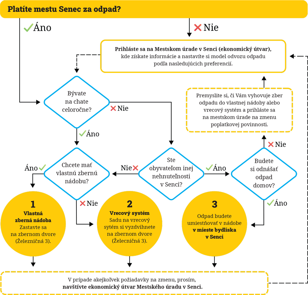 Bližšie informácie ohľadne systému zberu komunálnych odpadov, separovaných zložiek a drobných stavebných odpadov nájdete v platnom VZN o nakladaní s komunálnymi odpadmi a drobnými stavebnými odpadmi na území mesta Senec – viď príloha nižšie.