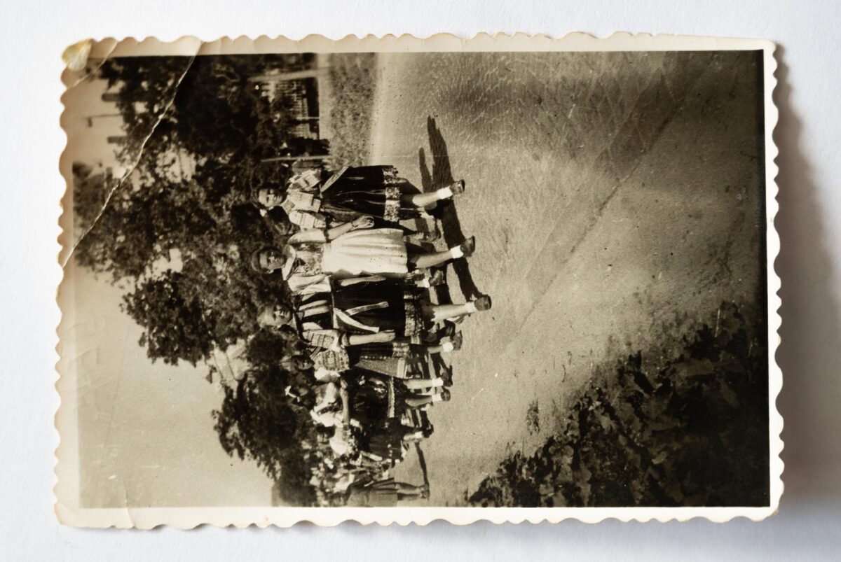Pani Elena Ingeliová nám do redakcie priniesla svoju fotografiu, na ktorej so spolužiakmi v sprievode ku Dňu matiek v roku 1947 nesú veľké srdce s nápisom „Najsladšie v lone matkinom“.