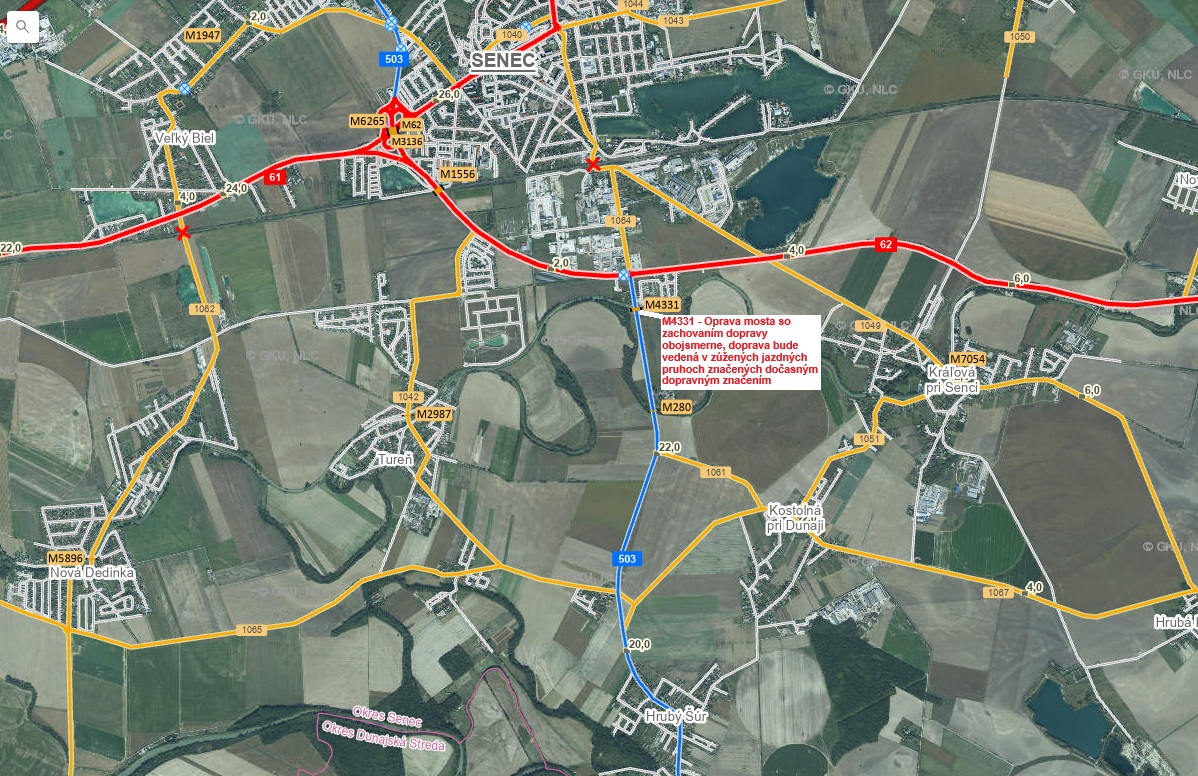 Správa ciest Bratislavského samosprávneho kraja začne od stredy 01.10.2025 s opravou mostného objektu M4331 v extraviláne mesta Senec na ulici Šamorínska. Most je súčasťou cesty II/503 medzi Sencom a Hrubým Šúrom. Stavebné práce budú nateraz prebiehať vedľa mosta t,j. mimo vozovky a úplne bez obmedzenia dopravy.