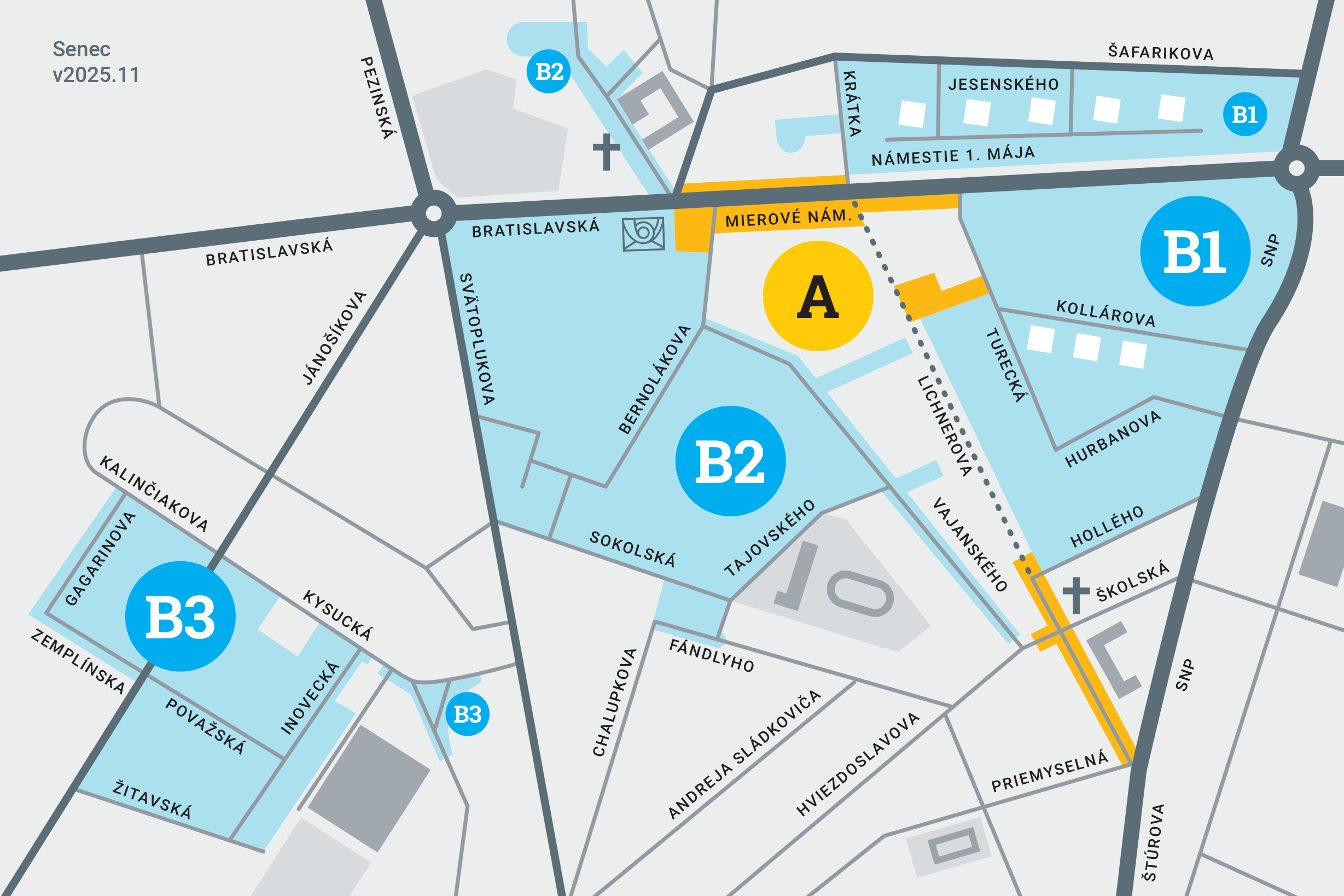 - kúpim si bonusovú kartu „Senčan“, aby som mohol ísť vybaviť čokoľvek do mesta a parkovať do 2 hodín zdarma v zónach B1, B2, B3.
