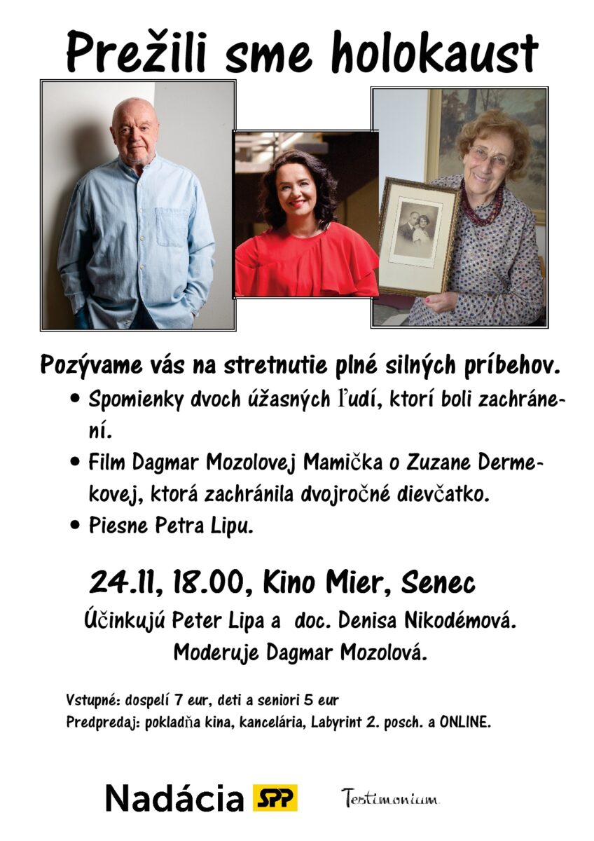 - Beseda v kinosále „PREŽILI SME HOLOKAUST“