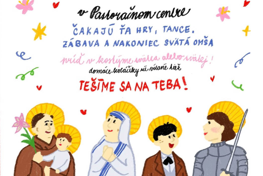 😇 Párty všetkých svätých: Pozývame ťa na PÁRTY VŠETKÝCH SVÄTÝCH! 31. októbra o 16:00 v Pastoračnom centre. Čakajú ťa hry, tance, zábava a na záver svätá omša. 👗 Príď v kostýme svätca alebo anjela! (domáce koláčiky sú vítané tiež)