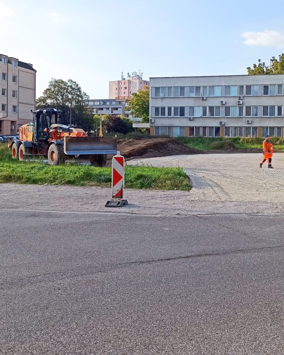 Jedná sa o dočasné spevnenie plochy počas doby výstavby polikliniky. Nakoľko výstavba polikliniky zoberie väčší počet zamestnaneckých parkovacích miest, mesto zabezpečilo pre personál polikliniky náhradnú parkovaciu plochu, aby nedochádzalo k prílišnému zaťaženiu parkovacích miest užívaných rezidentmi a ich návštevami v okolí. Táto dočasná plocha sa po ukončení výstavby plánuje odstrániť. Súčasťou prístavby novej budovy polikliniky bude aj podzemná garáž.