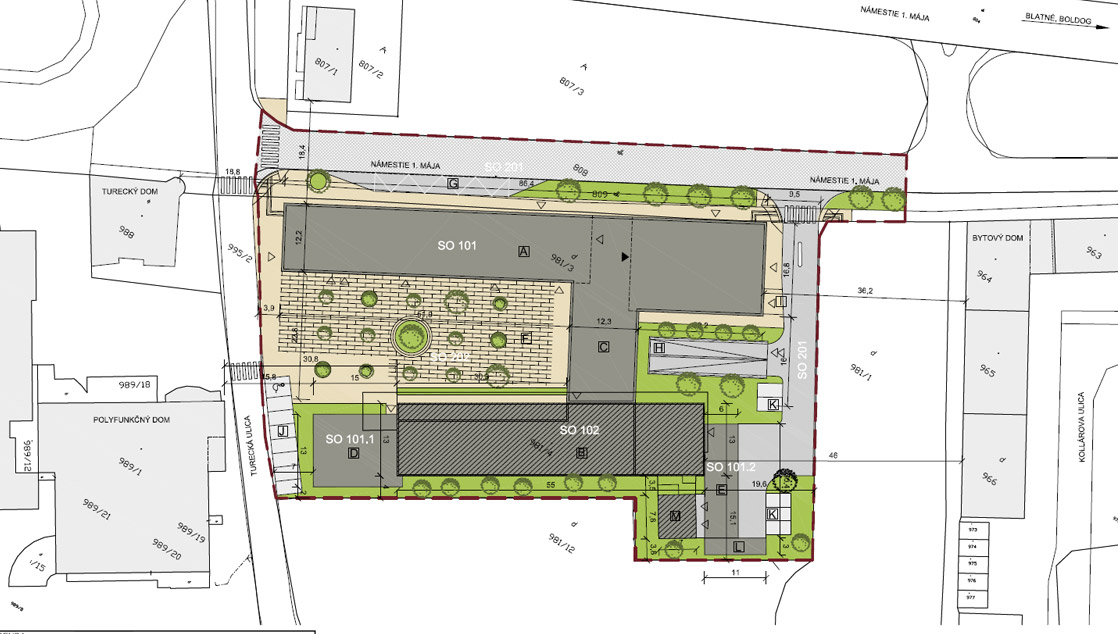 Útvar údržby postupne odstráni všetky označené dreviny a mobiliár. Náhradná výsadba za odstránené dreviny bude realizovaná po ukončení výstavby polikliniky v zmysle podmienok uvedených v rozhodnutí o výrube drevín.