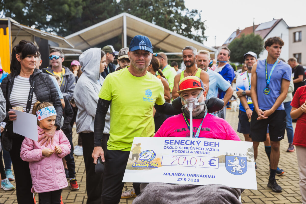 Senecký beh okolo Slnečných jazier má už tradične aj charitatívny rozmer a vyzbierané štartovné vo výške 2 040,50 EUR sa tentokrát Komisia športu pri MsZ v Senci rozhodla odovzdať Milanovi Darnadimu na rehabilitáciu.