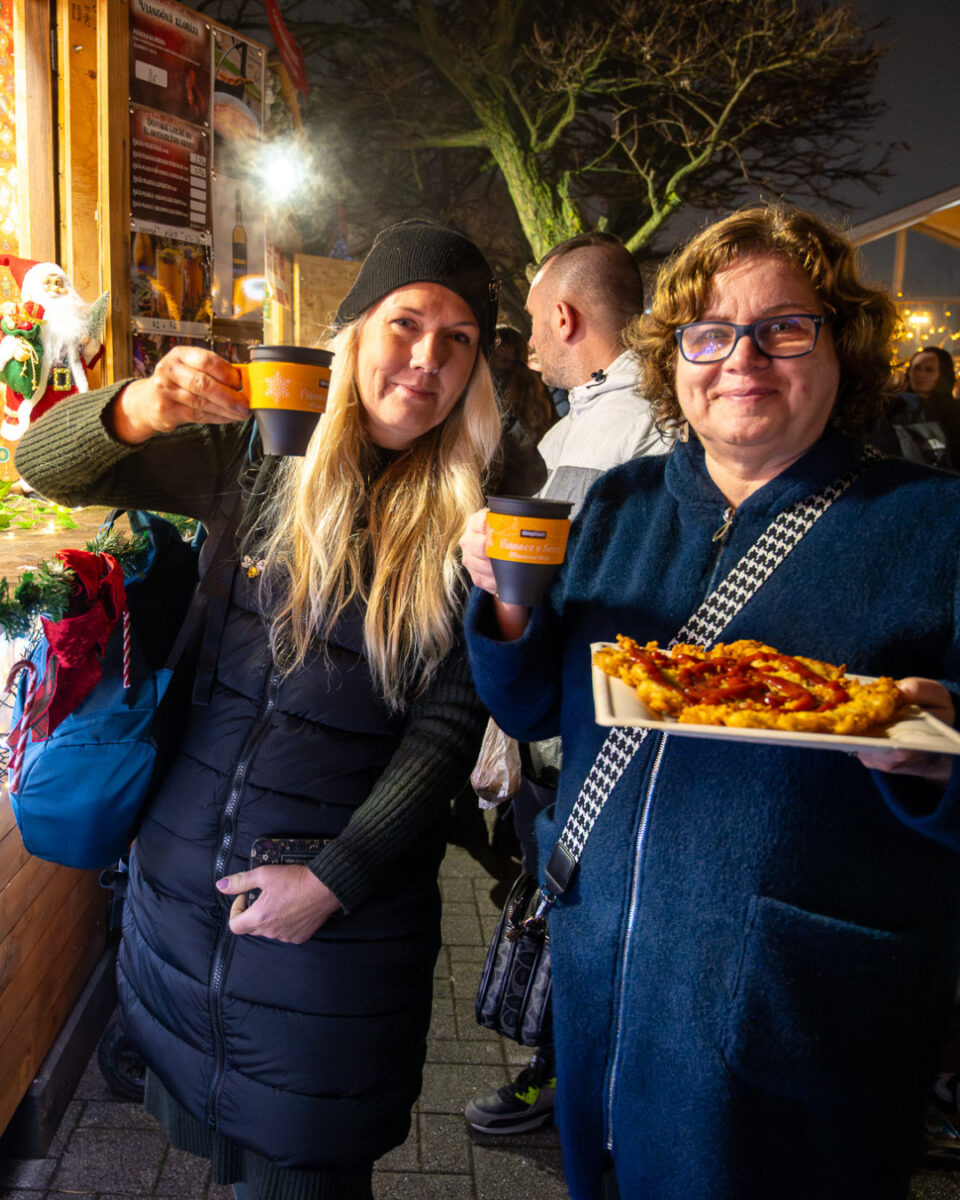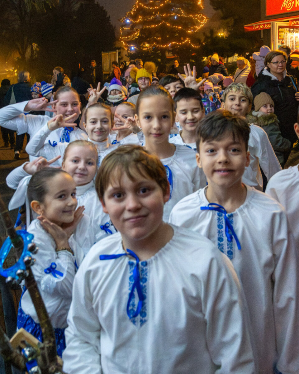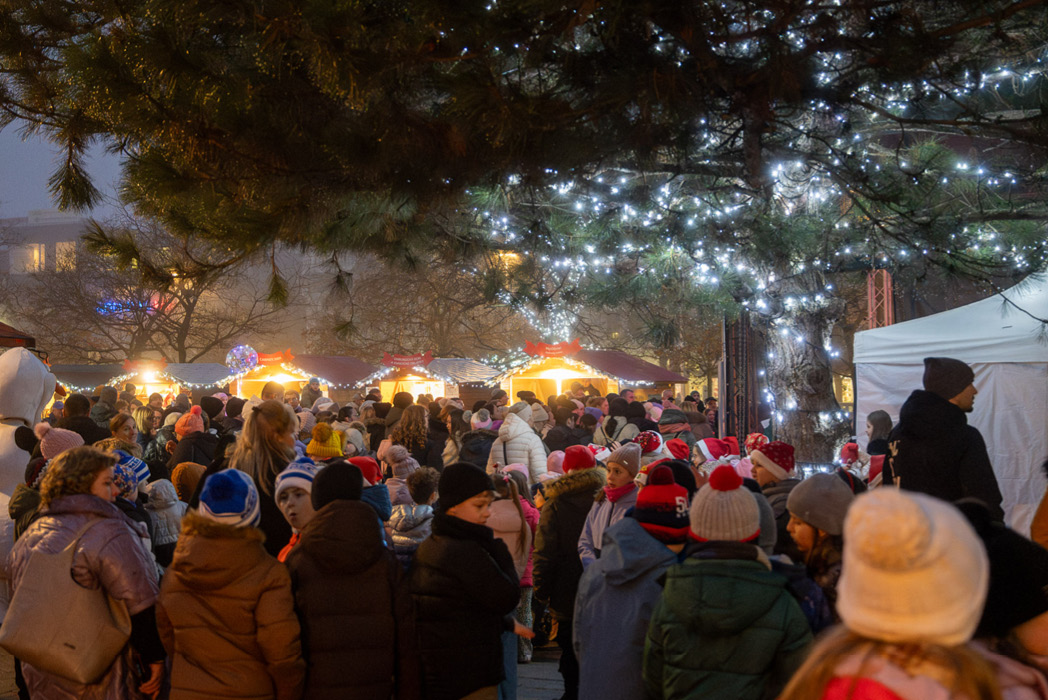 Vianočné trhy sú otvorené! V prvý deň trhov, 12. decembra 2025 nás svojím programom potešili deti zo ZŠ Mlynská a acapella skupina For You