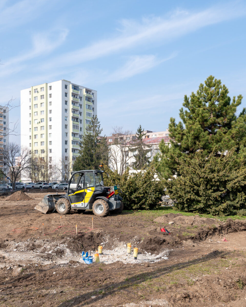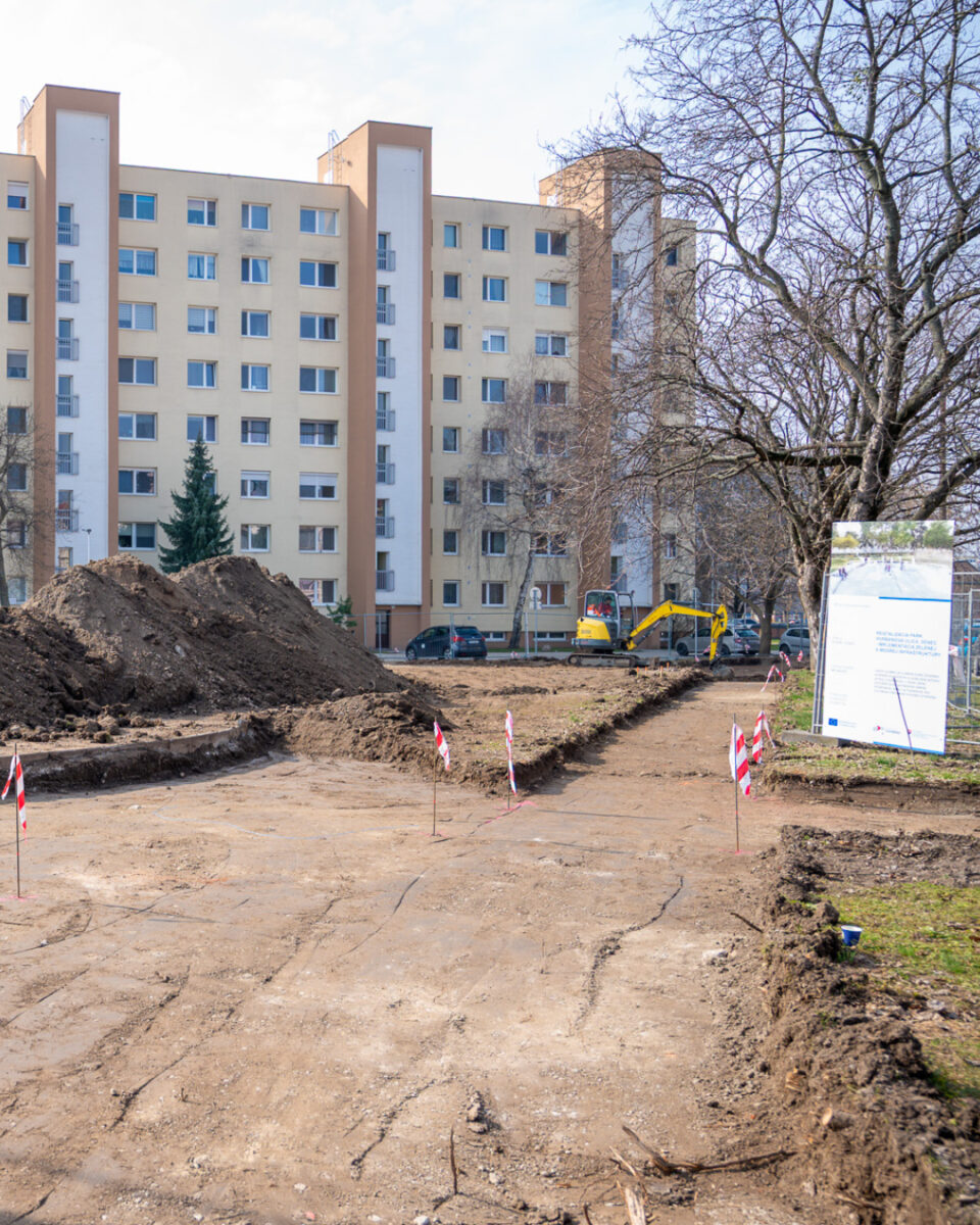 - realizované budú práce súvisiace s rekonštrukciou existujúcich parkovacích miest – výmena nepriepustných betónových povrchov za priepustnú dlažbu a vybudovaním chodníka pred bytovými domami,