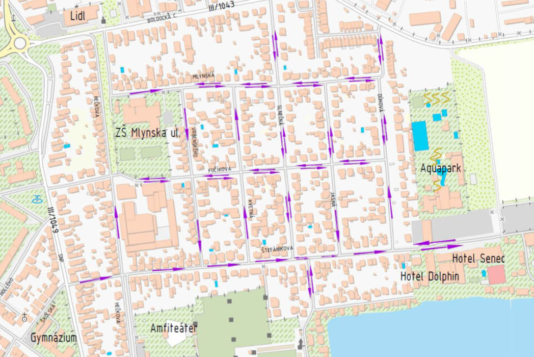 Zmeny sú prehľadne znázornené na priloženej mapke. Šípky označujú, či je komunikácia obojsmerná alebo jednosmerná, ako aj smer vedenia dopravy.