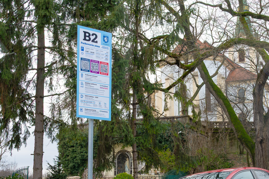 - Najbližší parkovací automat v okolí kostola pre zónu B2 je na rohu Bernolákova × Košická, cca 5 minút chôdze na sídlisku.