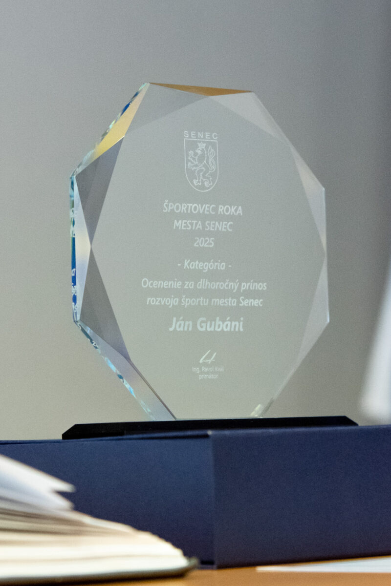 Ján Gubáni si nemohol zo zdravotných dôvodov prevziať cenu na slávnostnom galavečere, ktorý sa konal 4. februára, a na ktorom sa stretli najúspešnejší športovci mesta Senec za rok 2025. Fotografie z oceňovania prinesieme v samostatnej fotogalérii.