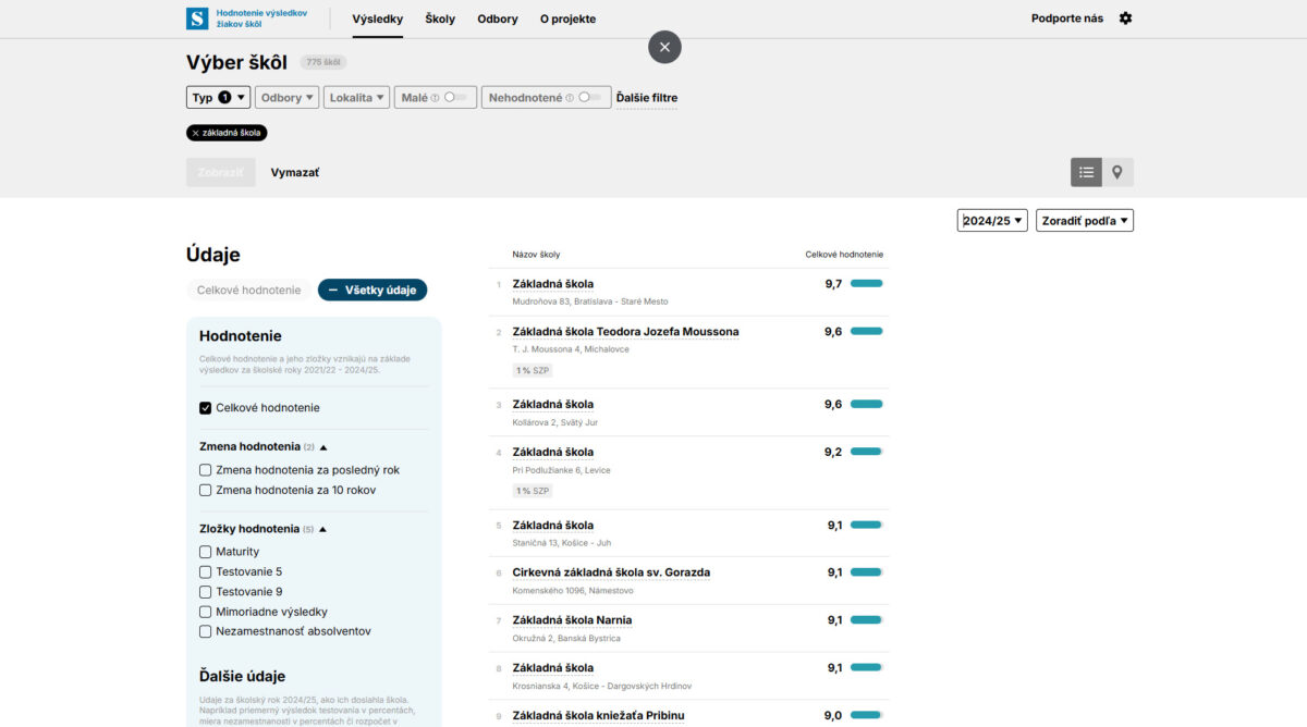 Všetky výsledky hodnotenia nájdete na https://skoly.ineko.sk/