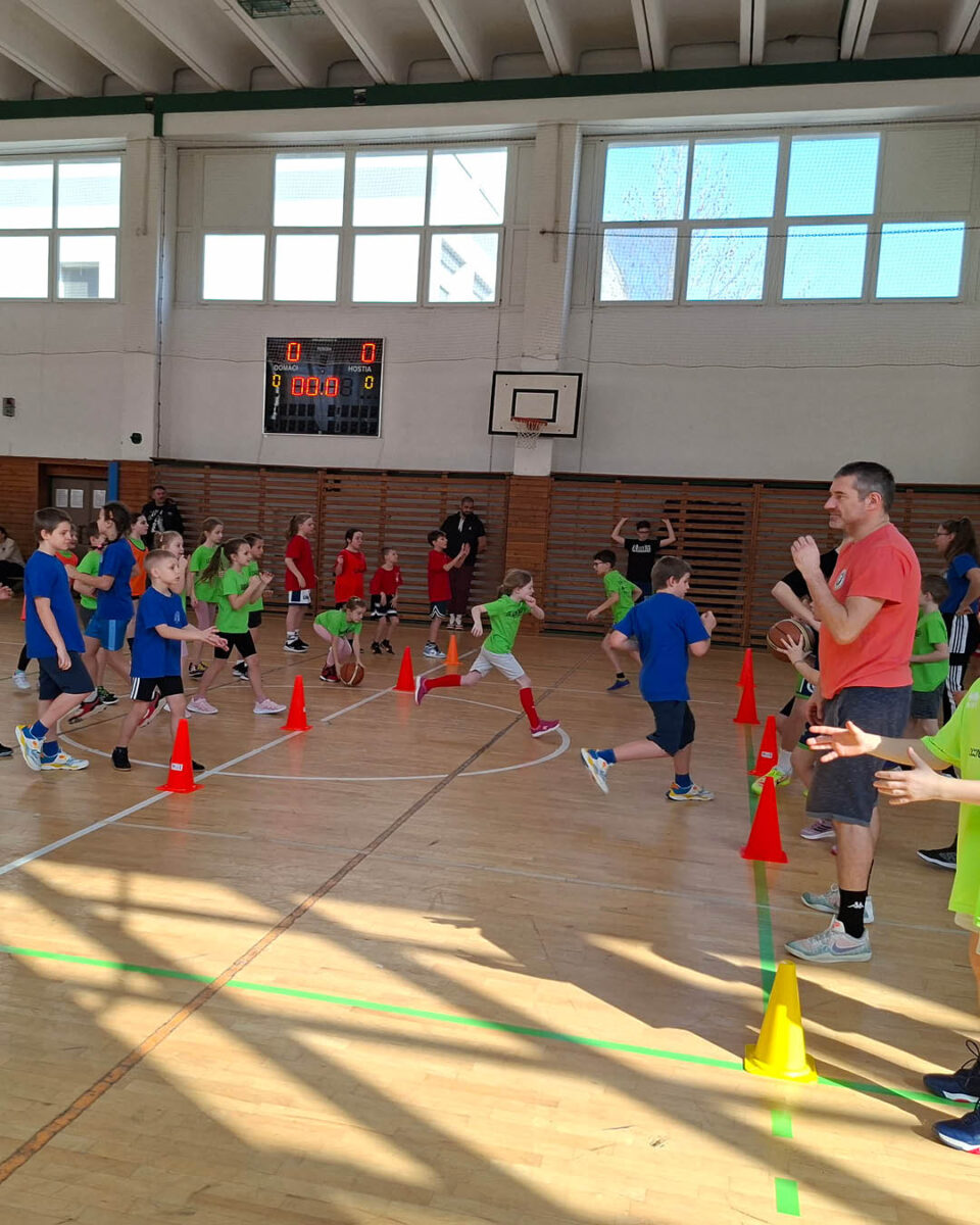 Zápasy, štafety a súťaže boli pripravené tak, aby sa rovnomerne zapojili všetky deti. Je úžasné sledovať, s akým nasadením bojujú za svoj tím a za svoju školu. Skvelé je, že nikto nechce sedieť na lavičke – každý chce hrať, hýbať sa a dať kôš.