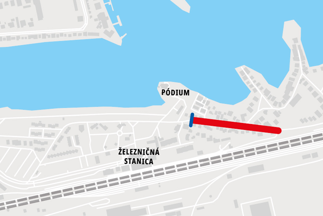 Ako vidíte na mapke, cesta bude uzavretá od modrej brány za bufetom pri kurtoch (vjazd na parkovisko k pódiu) po časť cesty, kde sú z cesty viditeľné koľajnice.