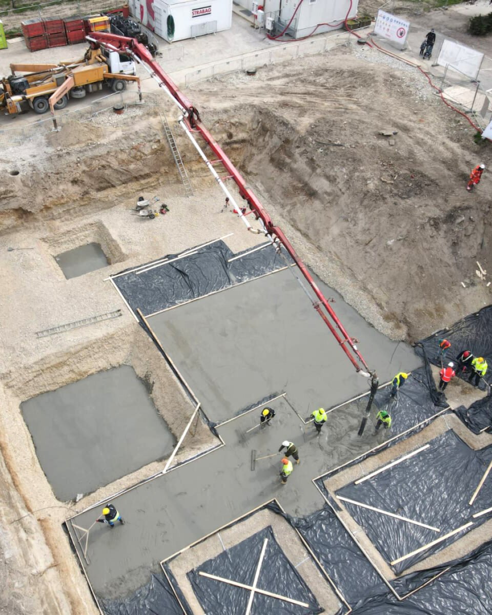 Minulý týždeň sa v zmysle plánu stavebných prác na projekte novej polikliniky začali po ukončení výkopových prác, ostatných zemných prác na stavebnej jame a prekládkach sietí aj práce na samotnej konštrukcii stavby. Plynulo sa prešlo k zakladaniu samotnej stavby a k zahájeniu betonárskych prác. Takže už nám v ďalších dňoch začne stavba aj viditeľne rásť do výšky.