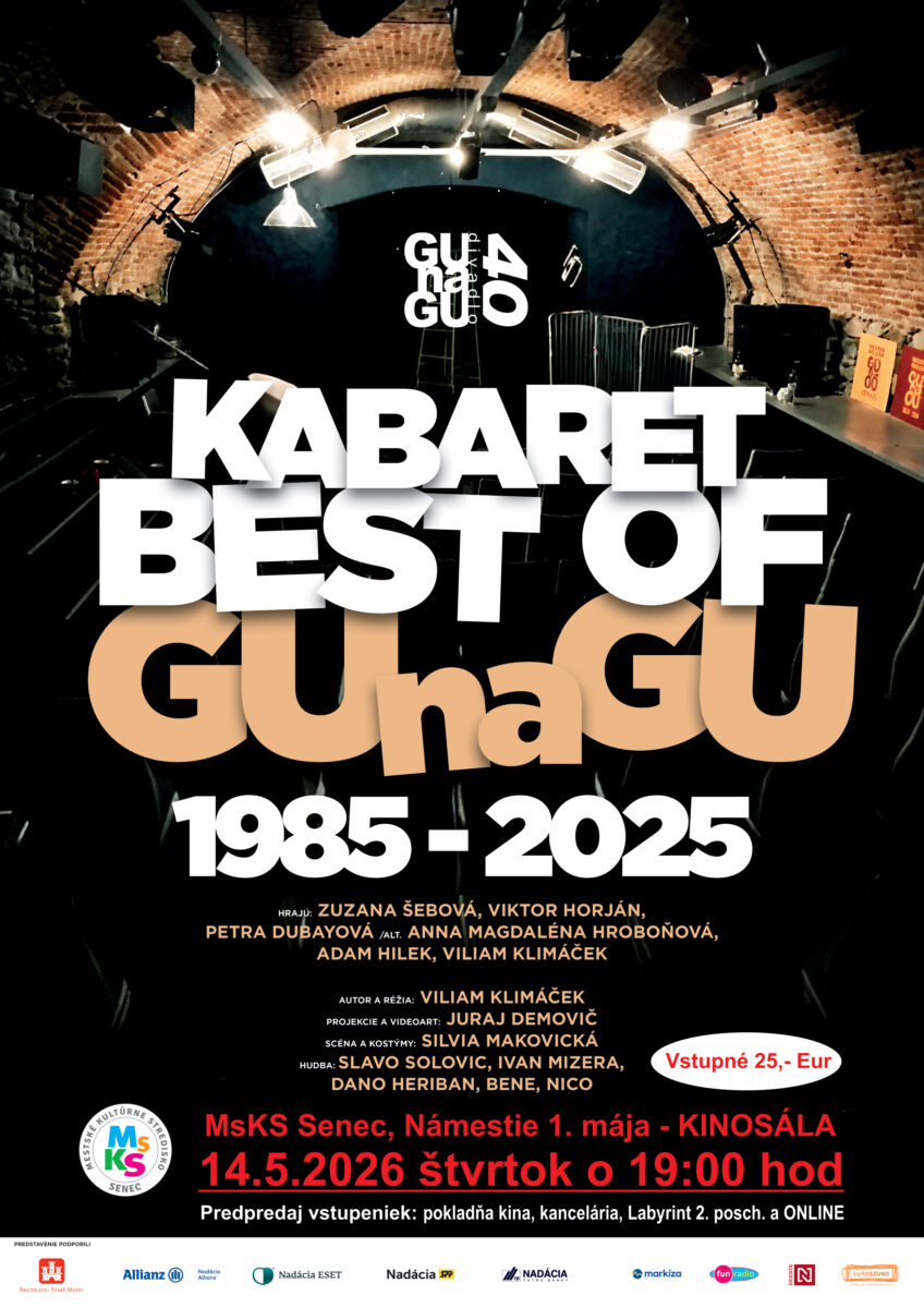 Mestské kultúrne stredisko Senec pozýva na predstavenie Kabaret Best of GUnaGU 1985 – 2025, ktoré prinesie výber toho najlepšieho z tvorby divadla GUnaGU.