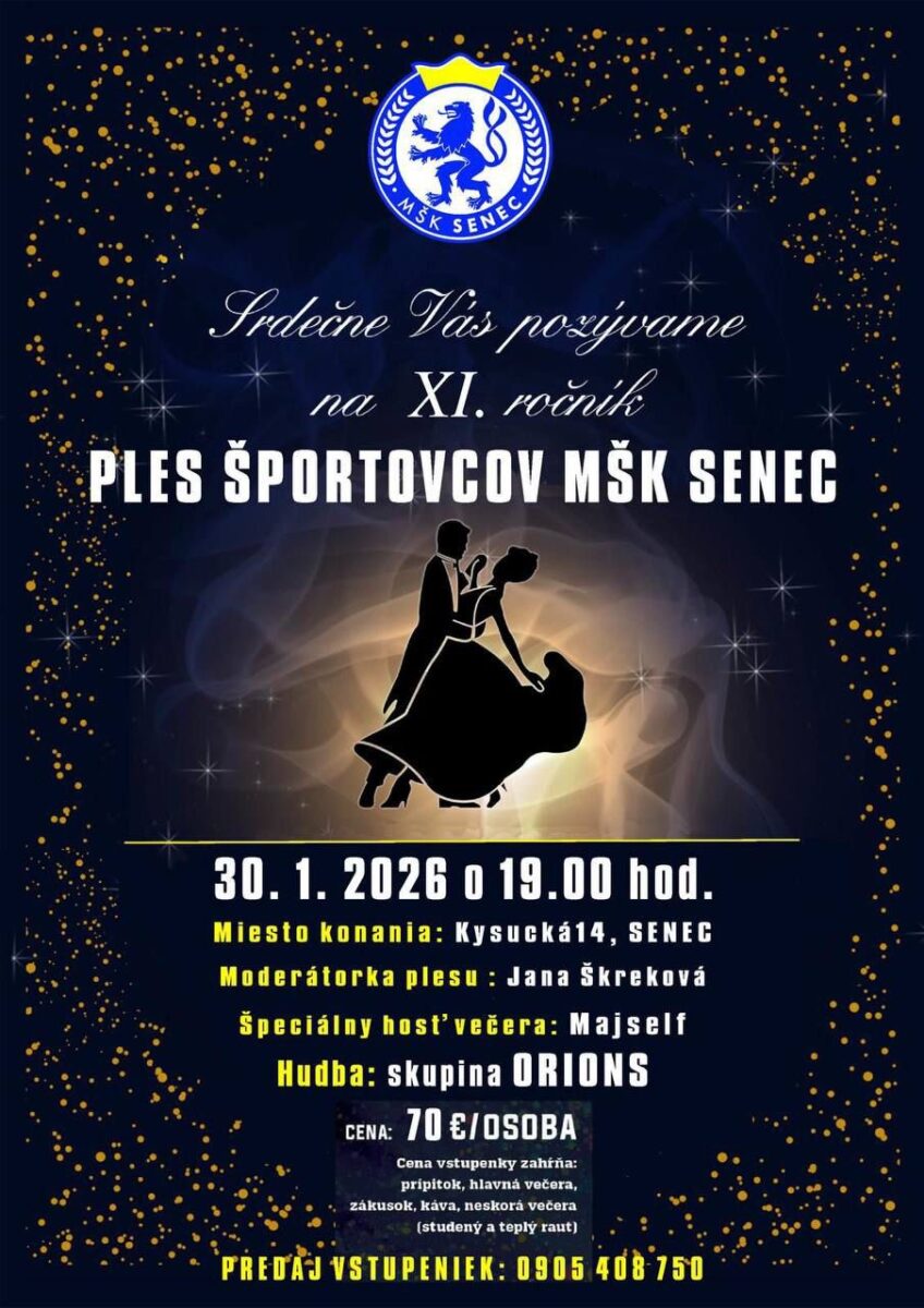 MŠK Senec vás pozýva na XI. ročník Plesu športovcov, ktorý sa uskutoční: