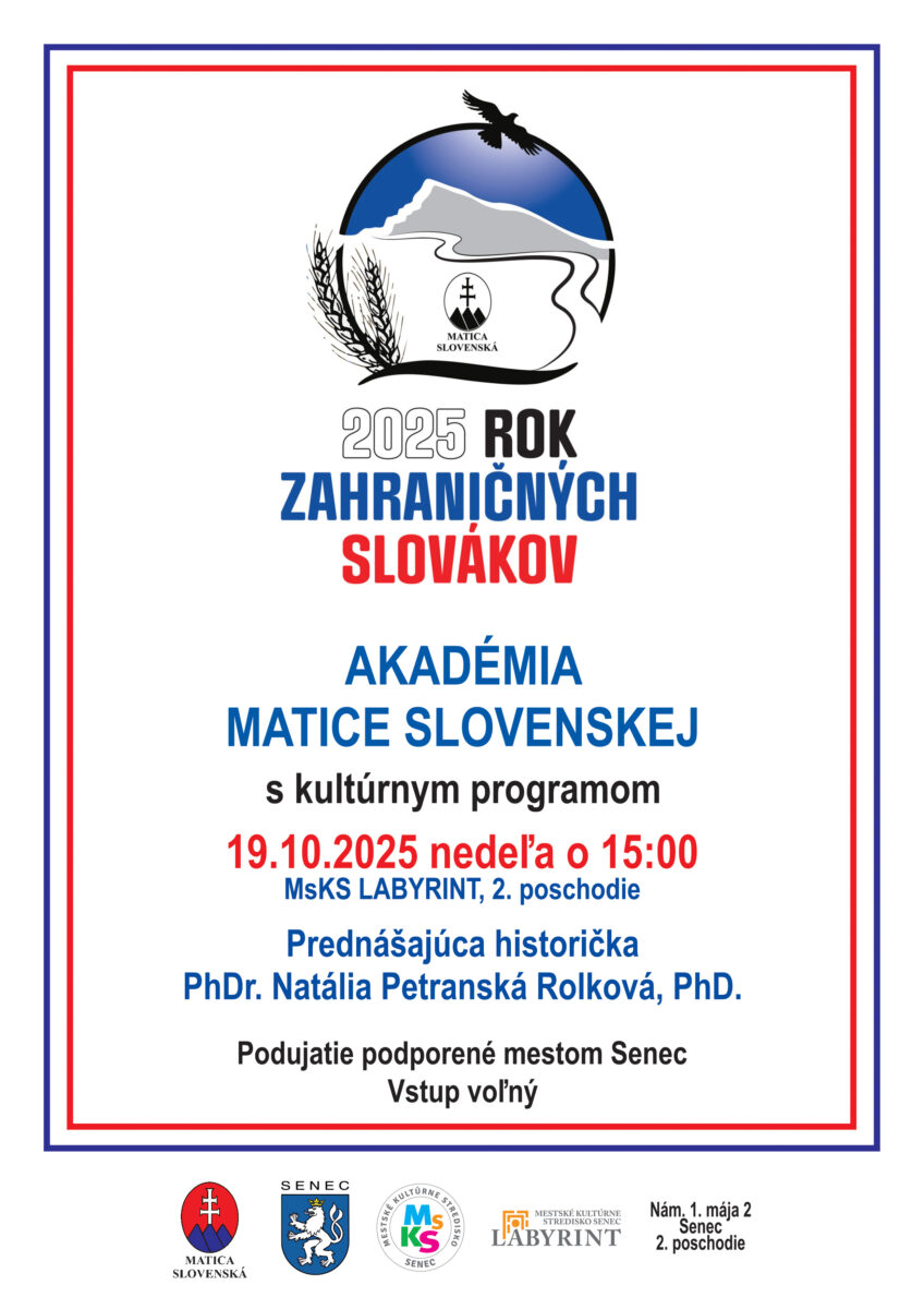 V rámci Roka zahraničných Slovákov 2025 vás srdečne pozývame na Akadémiu Matice slovenskej spojenú s kultúrnym programom.