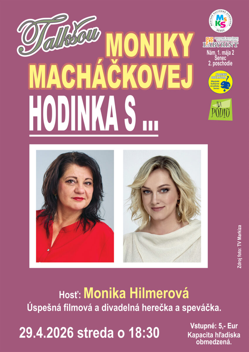 Mestské kultúrne stredisko Senec vás pozýva na ďalšie pokračovanie obľúbenej talkshow Moniky Macháčkovej.