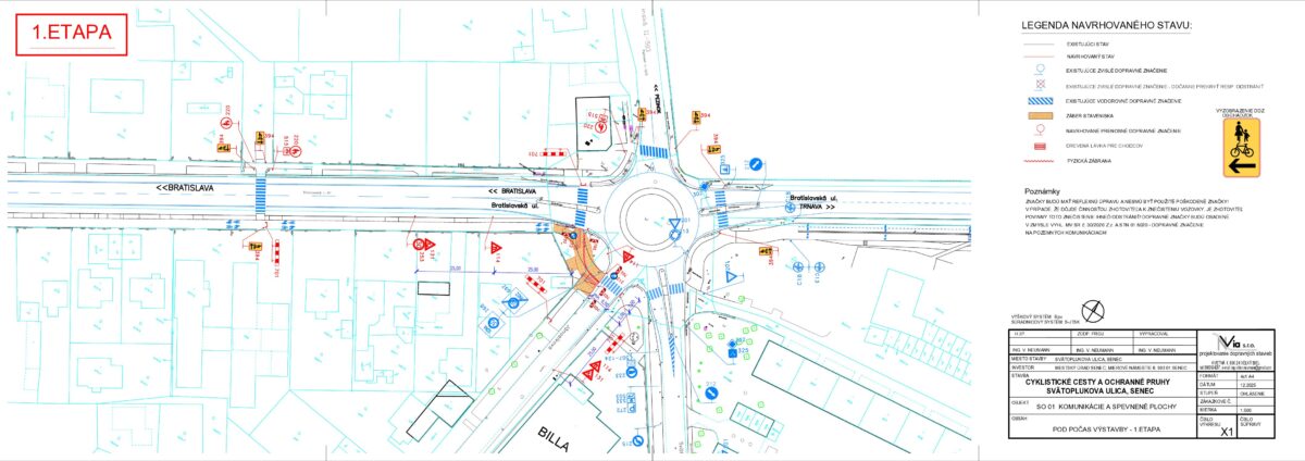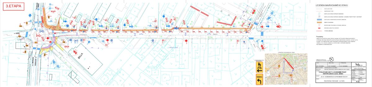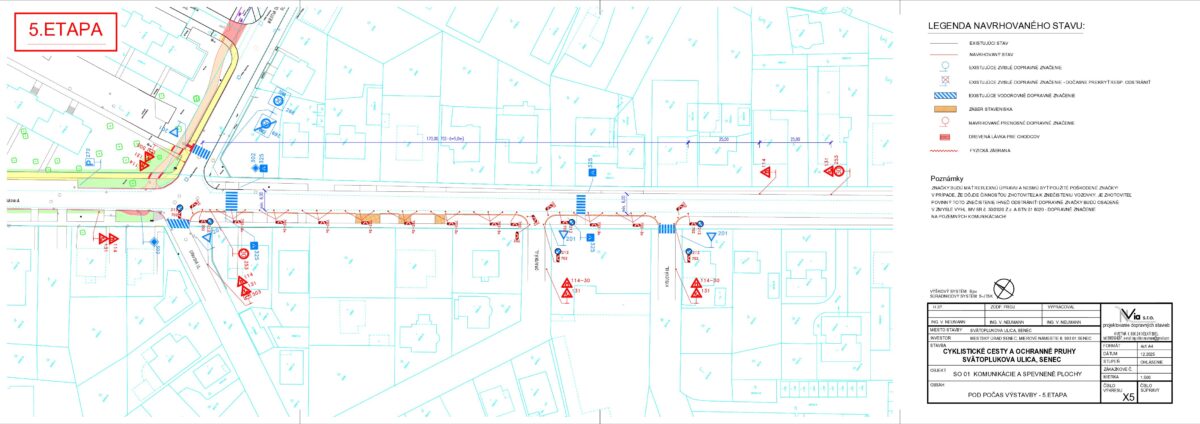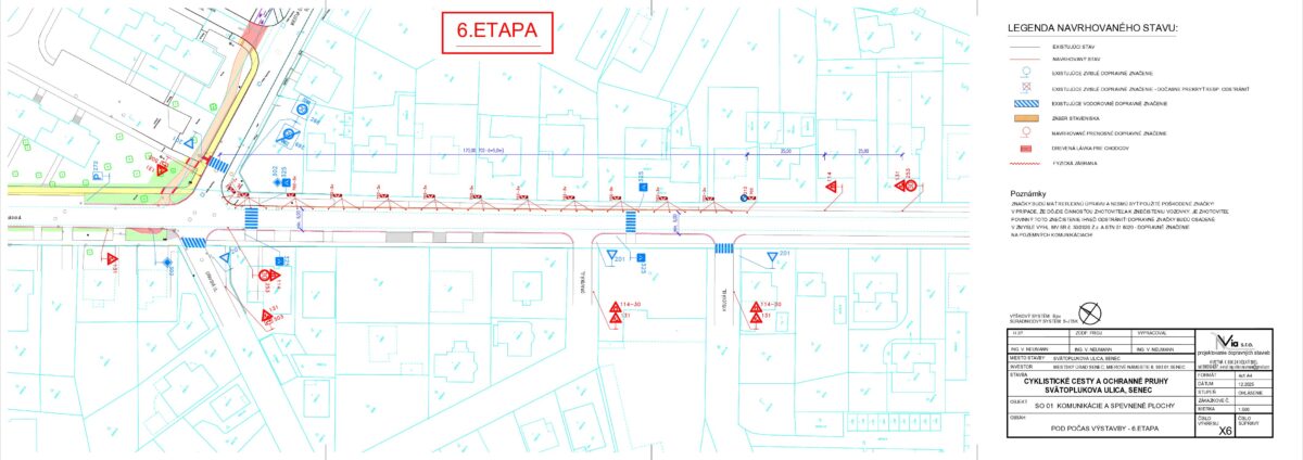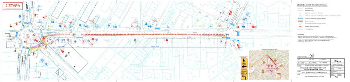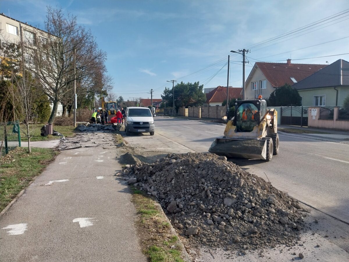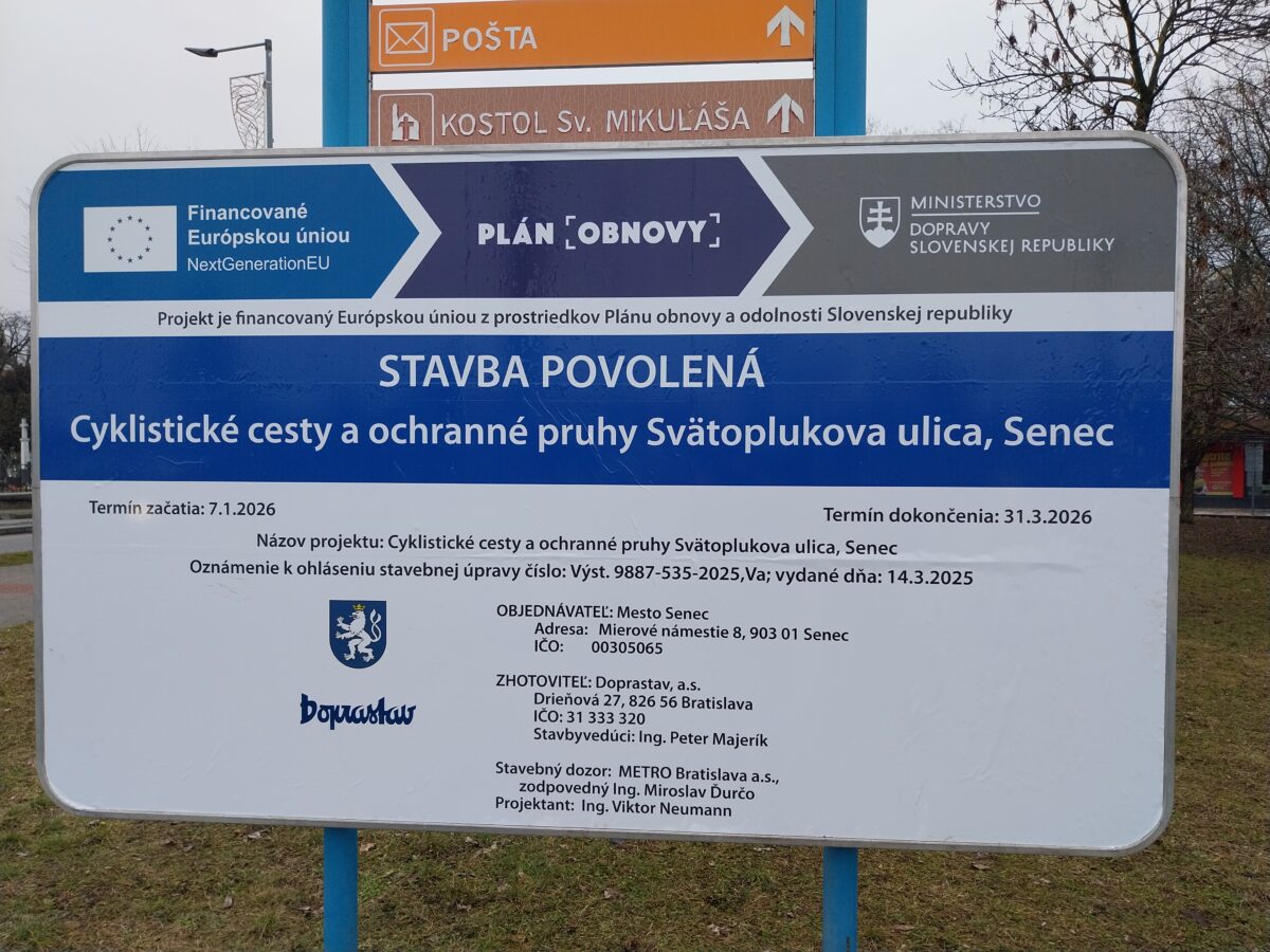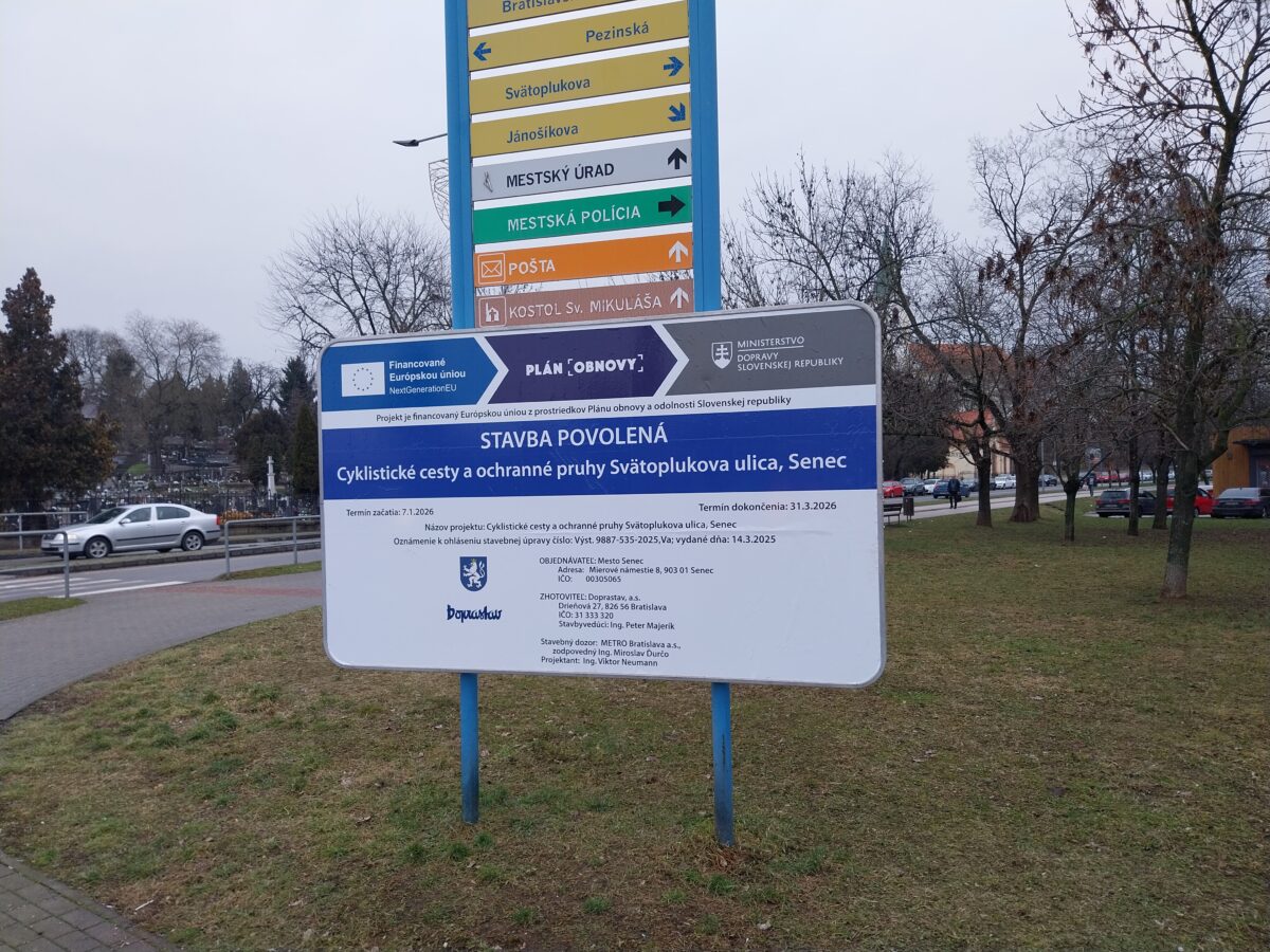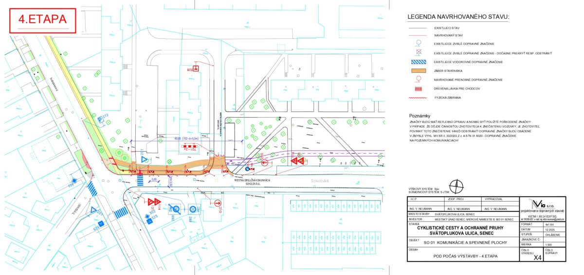 - Žiadosť o poskytnutie prostriedkov z Plánu obnovy vo výške 406 124 EUR bola predložená na schválenie 01.04.2025 na Ministerstvo dopravy SR, žiadosť bola schválená vo výške 378 594 EUR, zmluva o poskytnutí prostriedkov mechanizmu Plánu obnovy podpísaná, účinná od 4.10., VO na zhotoviteľa prebehlo a dňa 28.10. bola dokumentácia z VO predložená na ministerstvo dopravy na kontrolu, výsledok urgujeme, 7. januára sme protokolárne odovzdali stavenisko zhotoviteľovi, súčasne prebieha I., II., III., IV., V. a VI. etapa prác, pokračujúca výstavba na Svätoplukovej ulici (III.etapa) bude spojená s nevyhnutným čiastočným obmedzením dopravy formou jej zjednosmernenia v smere ku kruhovej križovatke pri obchodnom dome BILLA od 5. marca, taktiež je dočasne pre vozidlá neprejazdná časť ulice Sokolská kvôli výstavbe - napájaniu cyklochodníka (IV. etapa), pracuje sa na chodníkoch pre peších na Svätoplukovej aj Sokolskej ulici