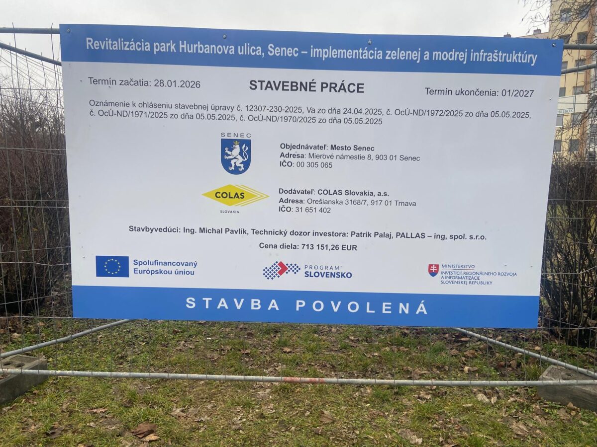 Revitalizácia park Hurbanova ulica, Senec – implementácia zelenej a modrej infraštruktúry
